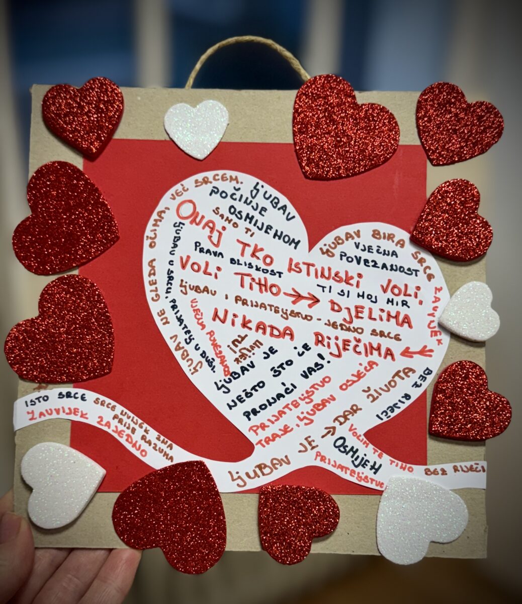 Pod vodstvom odgajateljice Sare Fumić, prof., dana 5.2.2026. održana je kreativna radionica recikliranja pod nazivom “Druga šansa papira – poruka ljubavi”. Radionica je protekla u ugodnoj i poticajnoj atmosferi. Učenice su s velikim zanimanjem sudjelovale u svim aktivnostima te su radionicom bile vrlo zadovoljne.